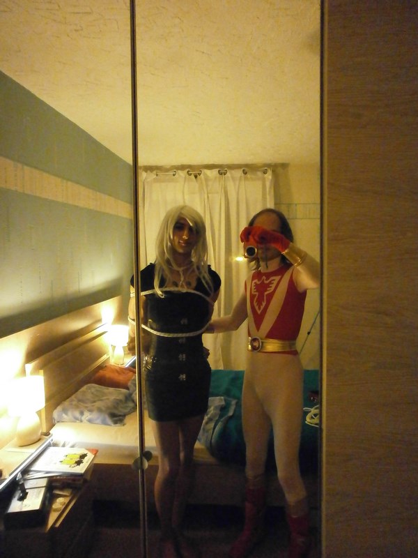 Maelle, et moi en Power Rangers force rouge :D